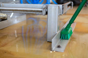 Clean around equipment and against walls with this HACCP compliant color-coded deck/wall scrub. This scrub features angled bristles around the perimeter and a rounded, compact design for improved durability. Includes 60" color-coded, ergo-sleeved, aluminum handle. Replaces 7044x-2937x 9" Flared Deck Scrub with 60" Aluminum Handle which was discontinued.