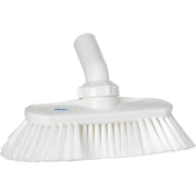 This unique brush has split fiber bristles to absorb liquid so that the user is able to efficiently carry soapy water from bucket to the surface to be cleaned. The bristles are soft enough for sensitive surfaces, and the waterfed design makes it excellent for rinsing after foaming. It is also commonly used as a dusting brush. The neck angle is adjustable to allow all bristles to remain constantly in contact with the cleaning surface. This is the replacement head for the Vikan Tank Brush with Waterfed Alloy Telescopic Handle (SKU: 7067-2973Q-0703US). Makes a great soft tank brush for those looking for something even softer than our medium stiffness tank brush>.