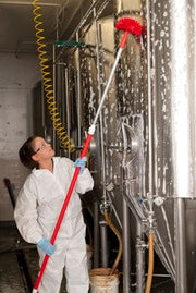 This Vikan premium tank brush with stiff bristles includes a color-coded 62" - 113" aluminum telescopic extension handle. The 8.3" x 5.1" tank brush is ideal for cleaning high walls, tanks, vats and bins.