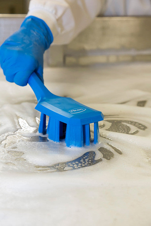 Union Jack offers only the highest quality hygienic cleaning brushes designed for the food and beverage industry. The industrial cleaning brushes manufactured by Vikan, Hill Brush and La Crosse are available in a variety of sizes, shapes and colors. Choose from an assortment of styles including pastry brushes, hand brushes, tube & value brushes, pipe brushes, tank brushes, and Ultra Safe Technology (UST) brushes. Brewery cleaning and wash-down has never been easier with hand brushes, keg brushes, tank brushes, drain brushes, flexible tube/valve, and floor brushes. They are available in medium and soft so they don't damage your stainless steel equipment and rated for high temps up to 250°F. The ergonomic grip on these bristle scrub brushes are comfortable for long periods of use without hand fatigue. Hygienic food brushes are an integral part of your HACCP / FSMA food safety program.