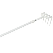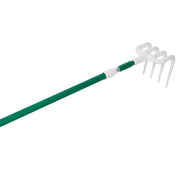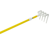 The Hygiene Rake includes a high quality 64" - 115" aluminum extension handle that when attached to the rake head extends beyond 10 ft. in length. The Hygiene Rake is perfect for raking from elevated bins. The rake is ideal for vineyards and commercial fishing. The rake tines are about 7.9 inches in length. The Rake head is white and the extension handle is available in multiple colors. Made from FDA-compliant materials. The handle can withstand demanding use and is chemical resistant.
