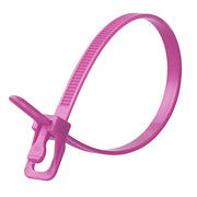 This innovative, releasable / reusable cable tie from RETYZ was designed for industrial wiring management. The patented releasable head lets you adjust or remove a tie with two fingers. No cutting and no wasted ties during line changeovers or inspections. RETYZ™ EveryTie in fluorescent colors delivers heavy-duty strength with high-impact visibility (UV reactive, glowing under blacklight to stand out in dark or dynamic environments). Available in packs of 20 or 100.