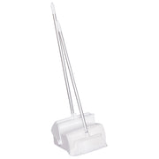 This lobby broom and dustpan combo has no hard edges or witness lines that could trap food residue or bacteria. It can be easily disassembled and reassembled for regular washing and sanitizing. The large, 7” x 14” bin allows for big and small cleanup jobs while the tall, 37” handle eliminates back pain from leaning over shorter dustpans. Ideal for food manufacturers, grocery stores, restaurants and anyone that needs high-quality dustpan with handle and broom. Also known as Lobby Dustpan with Broom. This broom dustpan combo is made from FDA-compliant materials.