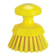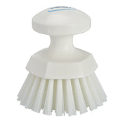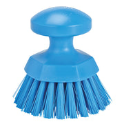 This ergonomic round hand scrub brush with 1.5" stiff bristles is fully color-coded. It features a round shape and raised grip that helps keep your hands from touching surfaces and chemicals, while also allowing you to exert more pressure, getting a better clean. This round hand brush also great for cleaning inside machines with small entry points. This brush is designed to tackle even the toughest messes with ease. Perfect for cleaning tables, conveyors, cutting boards, and floors in food production and processing facilities.